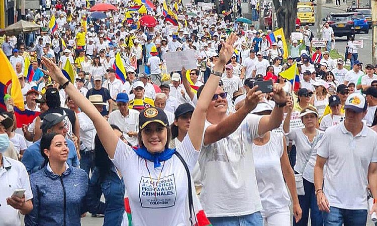 La senadora del Centro Democrático María Fernanda Cabal, acompañó la marcha en la capital del Valle y agradeció a los ciudadanos que salieron a marchar en contra de lo que llamó las “petrorreformas”.