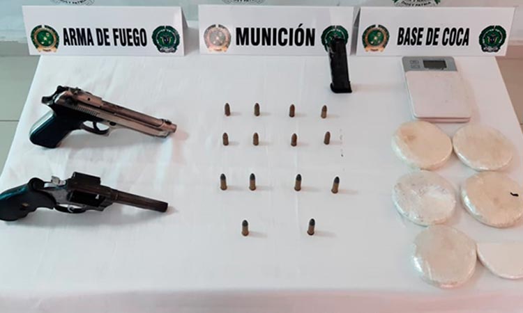 Los capturados fueron dejados a disposición de la Fiscalía por los delitos de tráfico de estupefacientes y porte ilegal de armas de fuego.