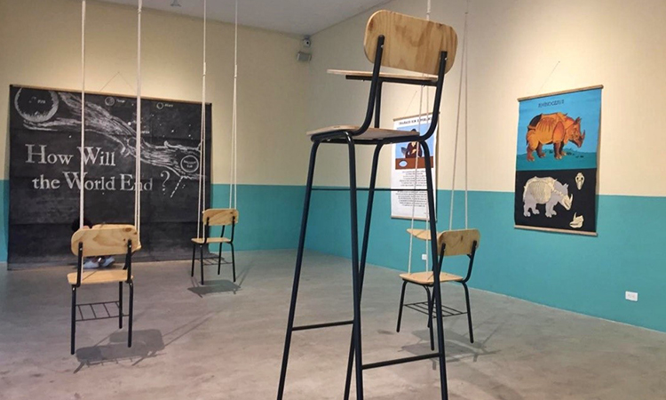 La artista Catalina Jaramillo recrea en su exposición un salón de clases para niños melancólicos. Desde una posición crítica frente al sistema educativo, nos invita a entrar a este espacio con la intención de generar ese malestar particular. La ironía está presente en la construcción de cada una de las piezas que hacen parte de esta instalación: la ingenuidad de las imágenes y de los elementos aparentemente inofensivos dentro de este salón demuestran, con altas dosis de humor negro, cómo los alumnos sufren durante el proceso de control y normalización al que están expuestos en la escuela.