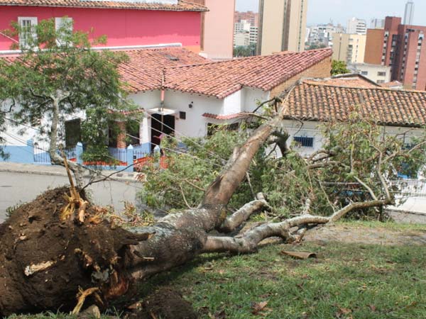 febrero 4 de 2013 - La caída de un árbol en la colina de San Antonio, en la mañana de ayer, tumbó dos postes de energía, uno de ellos sobre el carro de las Empresas...