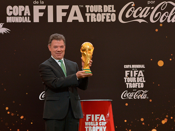 “Todos los colombianos en este momento nos sentimos muy orgullosos, muy orgullosos nos solo por tener la Copa Mundo aquí con nosotros, un acontecimiento que nos llega al fondo del corazón porque es el símbolo máximo del deporte tal vez más apasionante que existe en el planeta”, manifestó.